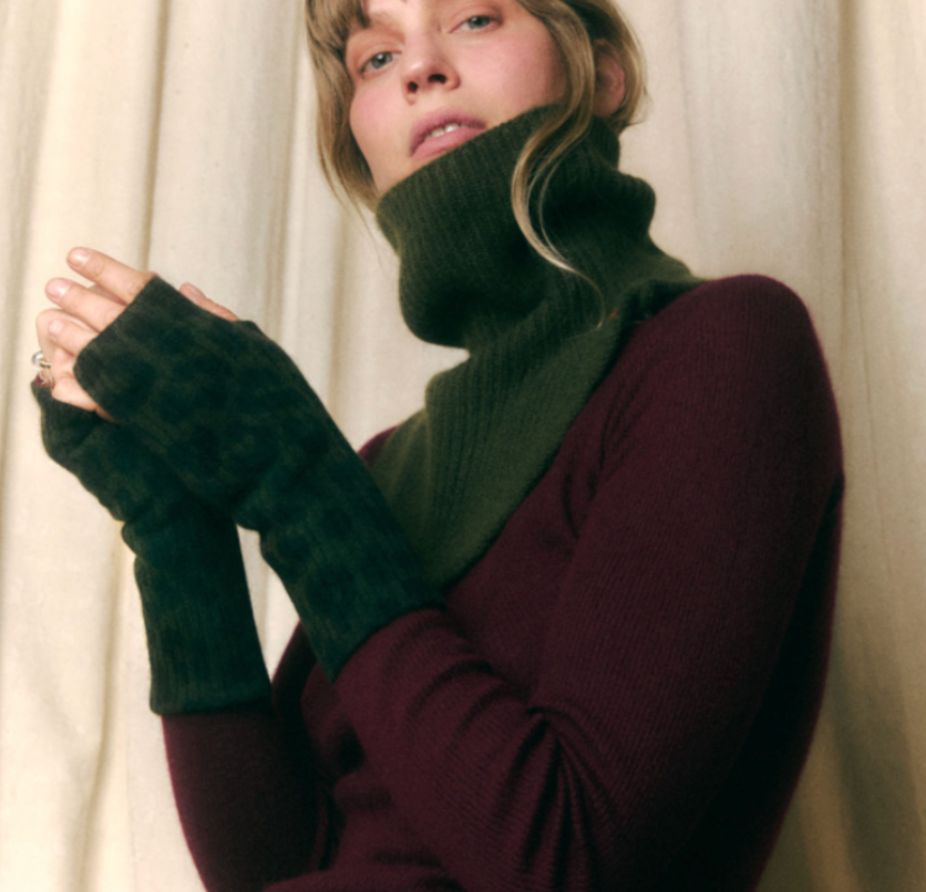 Mitaines en cachemire leopard kaki