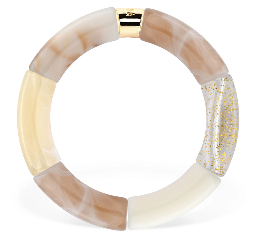 Les bracelets sont composés de 6 perles en acrylique ou résine de très belle qualité et une perle gravée PARABAYA en acier doré à l'or fin.