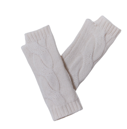Mitaines 100% cachemire torsadées écru